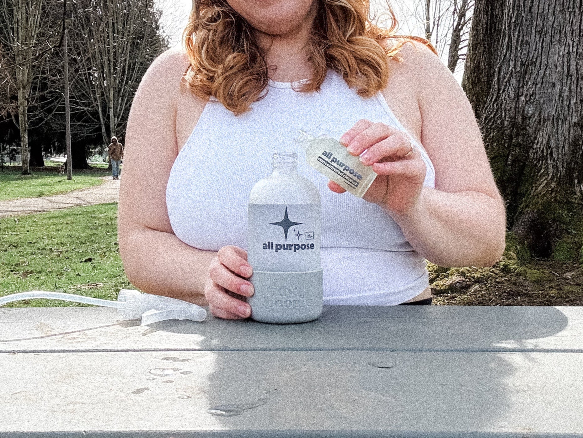Our 2oz refill makes a whole 16oz bottle of cleaner when mixed with water. It saves space under your sink and keeps plastic out of landfills.