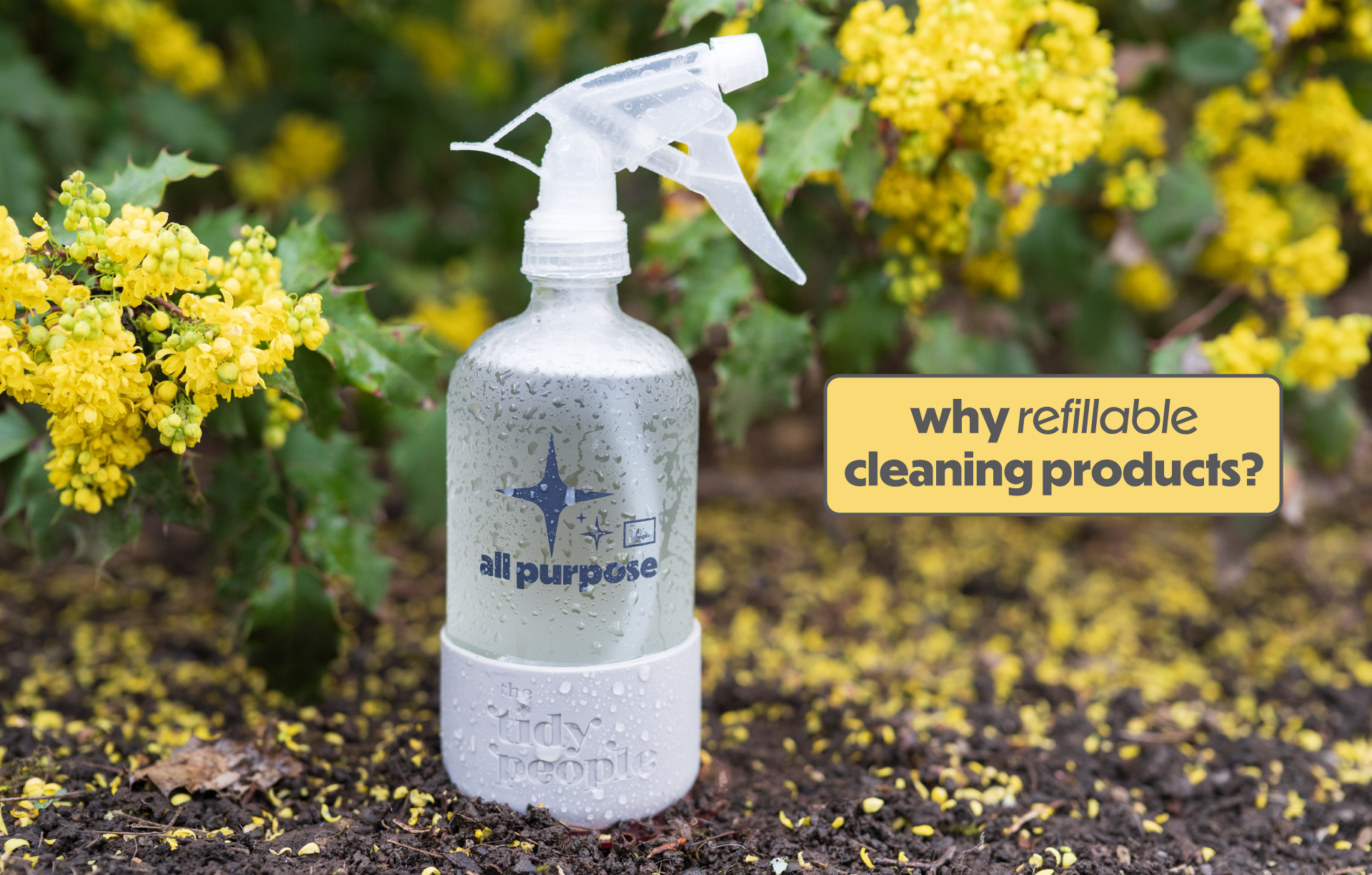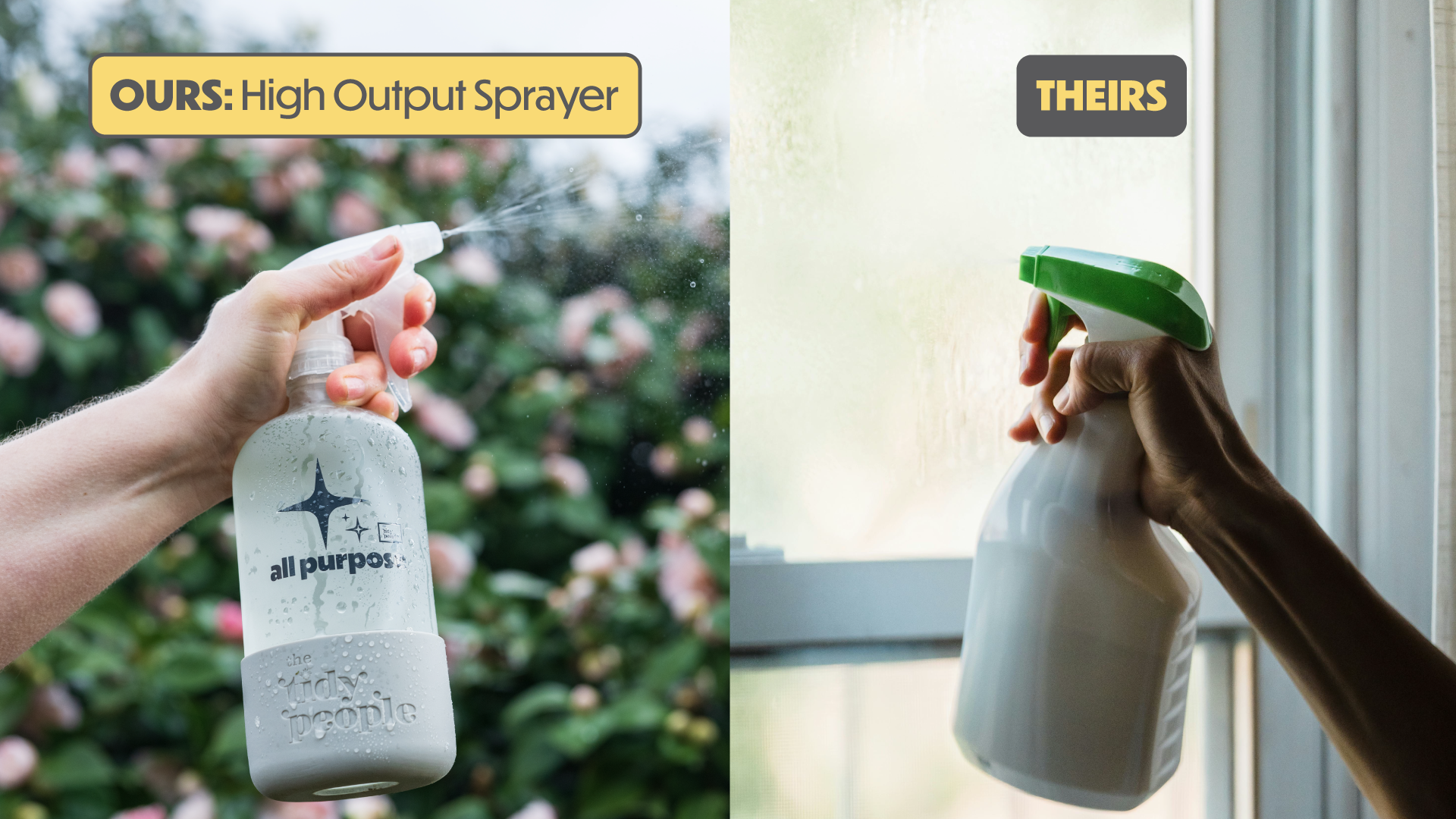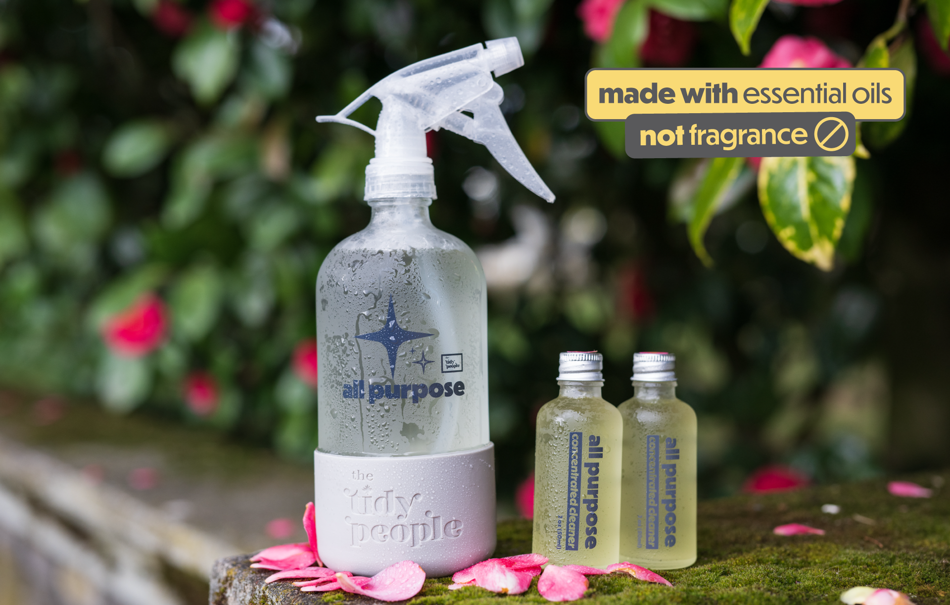 Refill The Tidy People All Purpose spray starter bottle with one-2 ounce concentrate, mixed with 14 ounces of water.